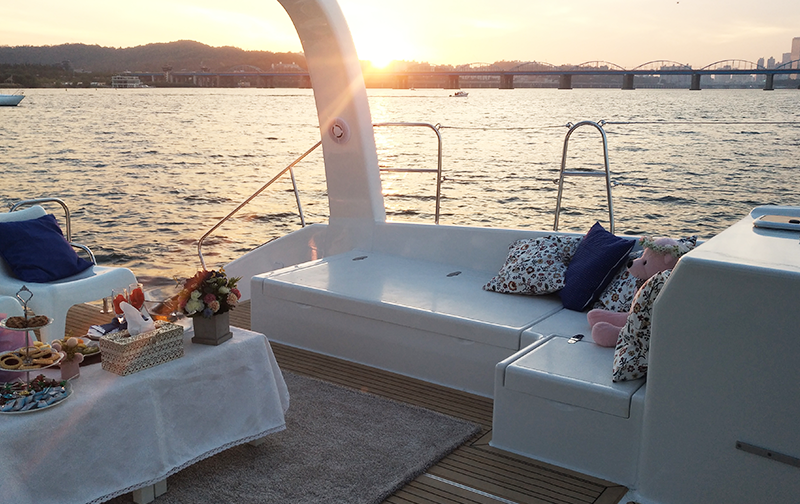 외부에 있는 요트 앞면 공간이 넓은 것이 특징입니다. 프린세스와 같이 내, 외부 다양한 공간에서 한강 뷰 관람이 가능하며 외부에서 여럿이 함께 즐길 수 있는 공간이 훨씬 여유롭습니다. 프린세스와 비슷하지만, 가격이 좀 더 저렴하고 선수가 길어 외부에서 즐길 시간이 더 많다는 장점이 있습니다.