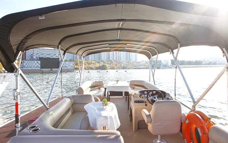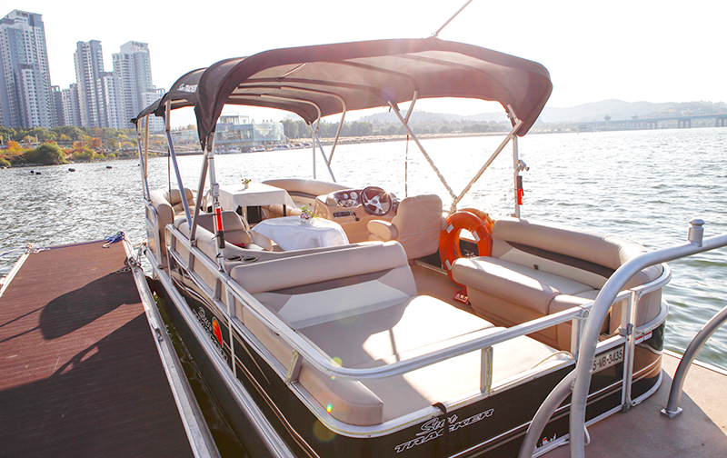 좌석 외, 후면부에 별도 구성된 휴식 공간까지 여유롭게 활용할 수 있는 장점이 있습니다. 오픈형 구조이므로 시원한 강바람에 최적화되어있고 테이블이 있어 간단한 음식과 함께 선상 위 야외 피크닉을 즐길 수 있습니다. 또한, 요트보다 가격 면에서 부담을 덜어줄 수 있어 가족, 친구, 커플, 모임 단체에 인기 만점입니다. 선셋, 분수쇼 등 다양한 프로그램 체험할 수 있는 럭셔리 파티보트입니다.