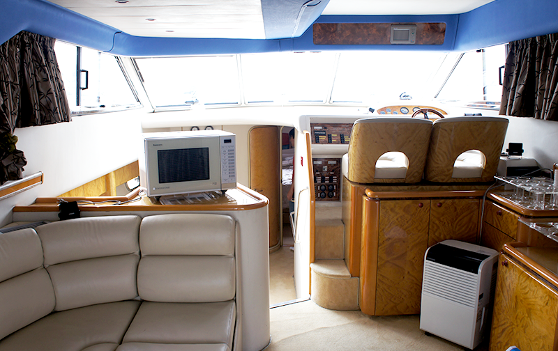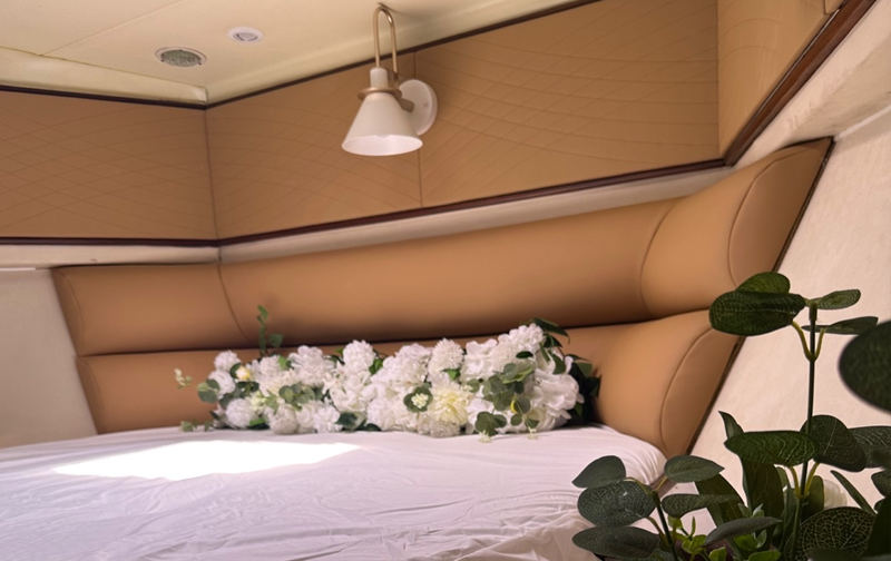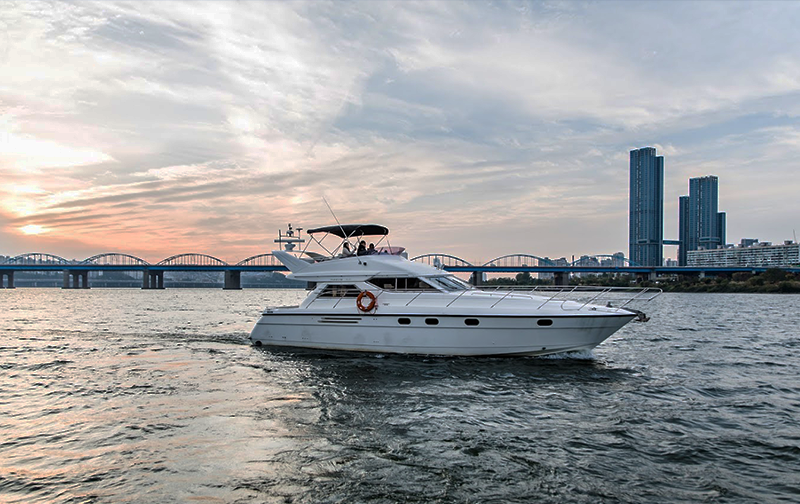 골든블루마리나가 보유한 가장 큰 파워요트로, 최대 11명 승선 가능하며 내·외부 다양한 공간에서 한강 뷰를 관람할 수 있습니다. 내부에는 리빙룸, 침실, 다이닝룸, 화장실 등이 구성되어 있어 마치 선상 위 호텔 룸을 연상시켜 많은 고객들이 직접 타보면 생각보다 넓은 공간에 놀라곤 합니다. 외부에는 요트 후면 좌석, 침실과 이어지는 갑판, 2층 야외 조타석 공간이 있습니다. 프라이빗한 파티나 프로포즈, 각종 이벤트 등에 자주 쓰이며 낭만적인 시간을 즐길 수 있습니다.