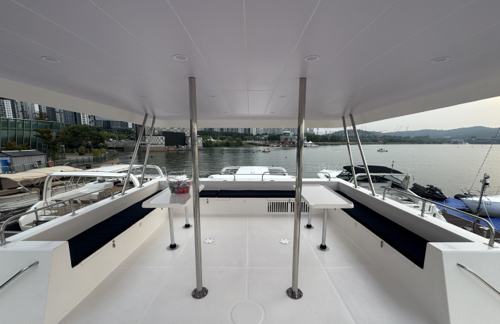 2025년 최신식 카타마란, 드디어 한강에서 이용하실 수 있습니다. 최대 50인까지 이용이 가능하며, 2층 플라이브릿지와 와이드한 실내, 실외를 갖추고 있어 단체 및 모임에 적합한 요트 입니다. 카타마란 요트로 파도의 저항에 강하며, 안정적인 운항이 가능합니다. 공간이 매우 넓기 때문에 실내에서 파티 및 회의, 워크샵 같은 모임을 하시기에 적합한 요트 입니다.