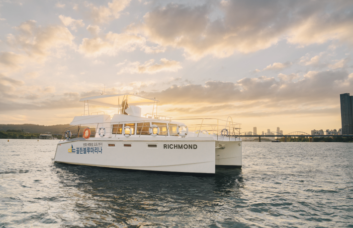 골든블루마리나가 보유한 가장 큰 파워요트로, 최대 11명 승선 가능하며 내·외부 다양한 공간에서 한강 뷰를 관람할 수 있습니다. 내부에는 리빙룸, 침실, 다이닝룸, 화장실 등이 구성되어 있어 마치 선상 위 호텔 룸을 연상시켜 많은 고객들이 직접 타보면 생각보다 넓은 공간에 놀라곤 합니다. 외부에는 요트 후면 좌석, 침실과 이어지는 갑판, 2층 야외 조타석 공간이 있습니다. 프라이빗한 파티나 프로포즈, 각종 이벤트 등에 자주 쓰이며 낭만적인 시간을 즐길 수 있습니다.