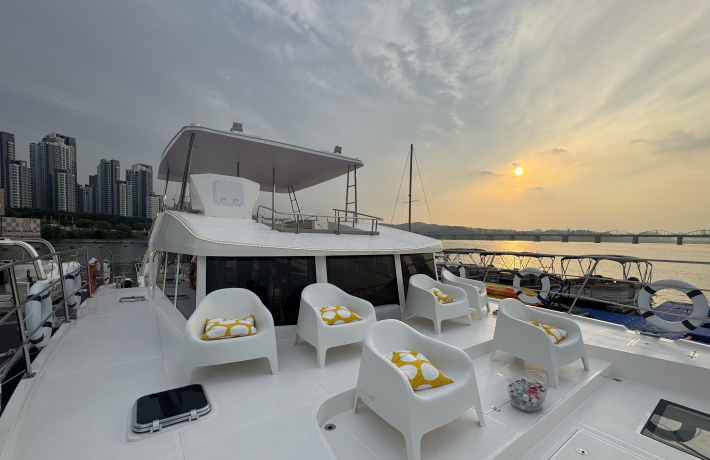 외부에 있는 요트 앞면 공간이 넓은 것이 특징입니다. 프린세스와 같이 내, 외부 다양한 공간에서 한강 뷰 관람이 가능하며 외부에서 여럿이 함께 즐길 수 있는 공간이 훨씬 여유롭습니다. 프린세스와 비슷하지만, 가격이 좀 더 저렴하고 선수가 길어 외부에서 즐길 시간이 더 많다는 장점이 있습니다.